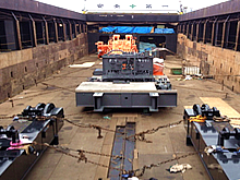艀、台船では、100tを超える大型機械や長尺貨物など、豊富な輸送実績があります。